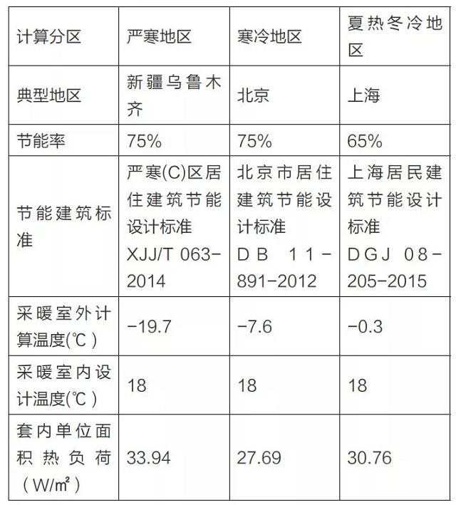 表1:典型地区节能建筑套内单位面积热负荷汇总表