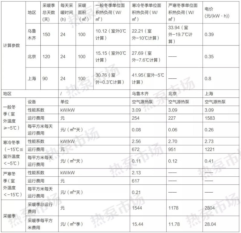 北京、上海,新疆乌鲁木齐、100平米空气源热泵供暖单采暖季要多少钱?