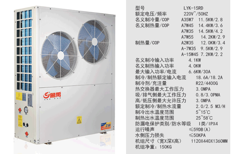 五、LYK-15RD超低温空气源热泵机组参数: