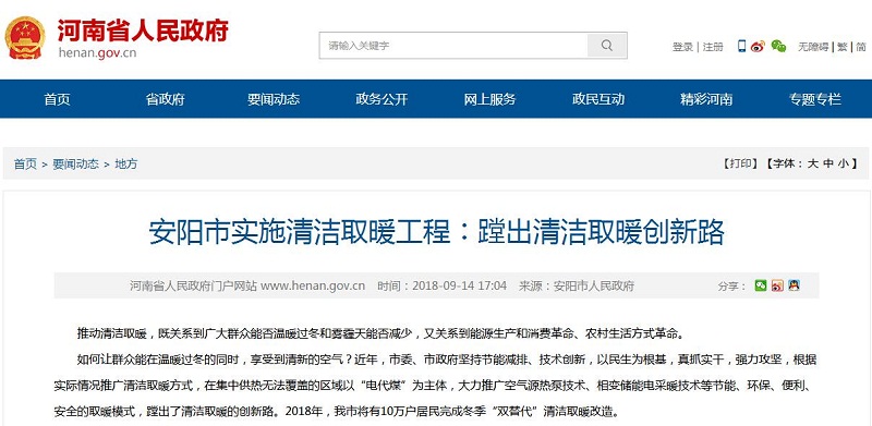 安阳市人民政府运用空气源热风机结合相变储能蹚出清洁取暖创新路