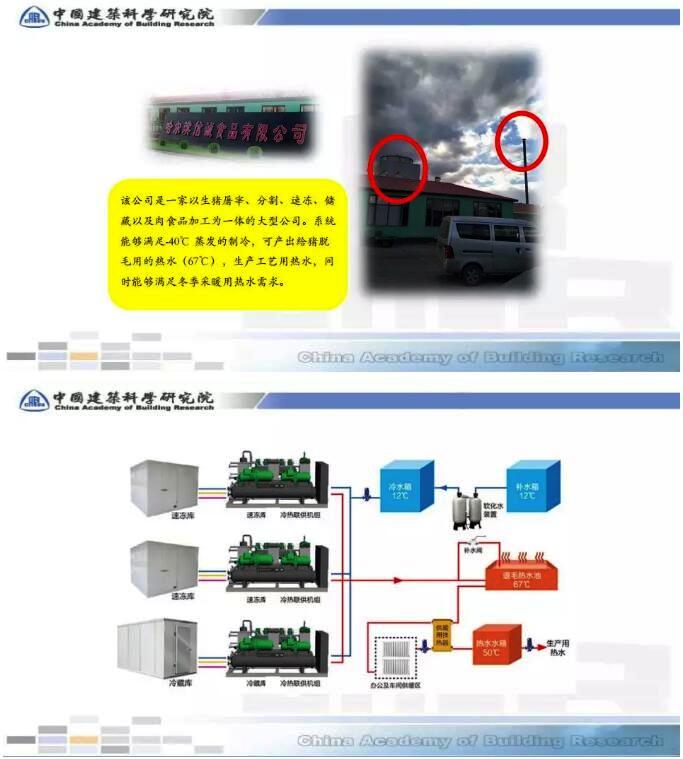 此外,商用采暖热水模式是非常好的热泵应用模式,该热泵系统能够满足-40℃ 蒸发的制冷,可产出给猪脱毛用的热水(67℃),生产工艺用热水,同时能够满足冬季采暖用热水需求。