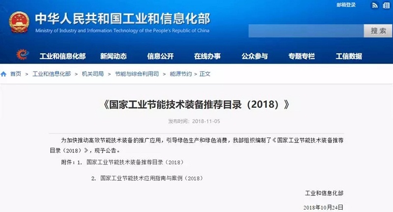 2018Äê11ÔÂ5ÈÕ£¬¹¤ÒµºÍÐÅÏ¢»¯²¿·¢²¼¡¶¹ú¼Ò¹¤Òµ½ÚÄܼ¼Êõ×°±¸ÍƼöĿ¼(2018)¡·¹«¸æ£¬ÆäÖС°¸ßÎÂÆøÔ´Èȱúæ¸Éϵͳ½ÚÄܼ¼Êõ¡¢µ¥»úË«¼¶ÂݸËÐÍ¿ÕÆøÔ´Èȱûú×é½ÚÄܼ¼Êõ¡±Á½Ïî¿ÕÆøÔ´Èȱü¼Êõ¡¢°¸Àý³É¹¦ÈëÑ¡¡¶¹ú¼Ò¹¤Òµ½ÚÄܼ¼Êõ×°±¸ÍƼöĿ¼(2018)¡·¼°¡¶¹ú¼Ò¹¤Òµ½ÚÄܼ¼ÊõÓ¦ÓÃÖ¸ÄÏÓë°¸Àý(2018)¡·¡£