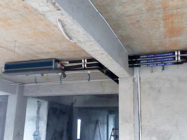 空调制冷:夏季采用家庭中央空调系统,制冷时,控制主机通过冷热水管连接多个末端出风口,将冷暖气送到不同区域,来实现室内空气调节。此系统使用档次高、外形好、舒适度强,可实现美观典雅和舒适卫生的和谐统一,是国际和国内的发展潮流。本系统采用风机盘管制冷,客厅、餐厅、休闲区、卧室、书房等区域设置风机盘管。