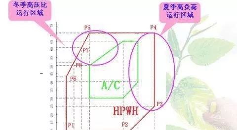 ͼ1 ¿Õµ÷ѹËõ»ú(A/C)ºÍÈȱÃѹËõ»ú(HPWH)ÔËÐз¶Î§¶Ô±Èͼ