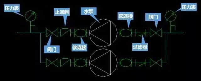 (³öË®²à)·§ÃÅ¡ªÖ¹»Ø·§¡ªÈíÁ¬½Ó¡ªË®±Ã¡ªÈíÁ¬½Ó¡ªYÐ͹ýÂËÆ÷¡ª·§ÃÅ(½øË®²à)