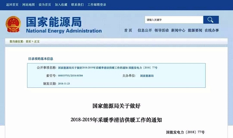 ¹ú¼ÒÄÜÔ´¾Ö¹ØÓÚ×öºÃ2018-2019Äê²Éů¼¾Çå½à¹©Å¯¹¤×÷µÄ֪ͨ