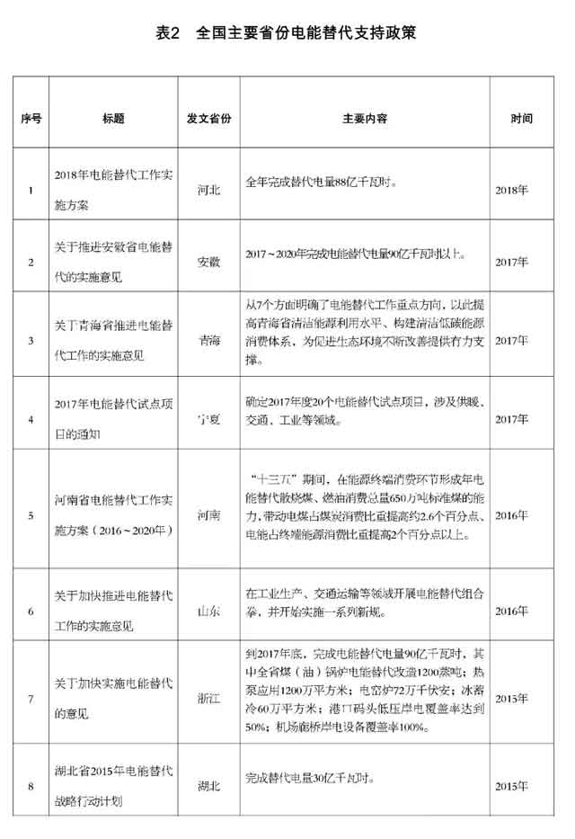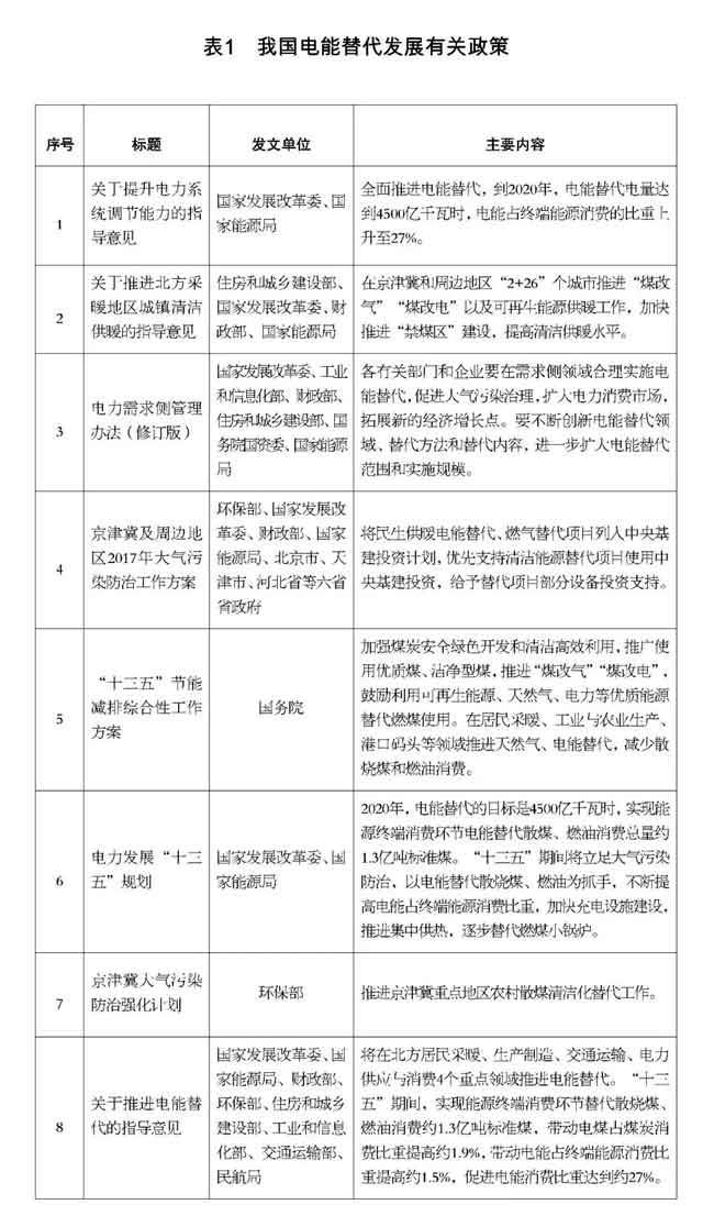 2016Äê5Ô£¬¹ú¼Ò·¢Õ¹¸Ä¸ïίµÈ°Ë²¿ÃÅÁªºÏÓ¡·¢µÄ¡¶¹ØÓÚÍÆ½øµçÄÜÌæ´úµÄÖ¸µ¼Òâ¼û¡·Ê״ν«µçÄÜÌæ´úÉÏÉýΪ¹ú¼ÒÂäʵÄÜÔ´Õ½ÂÔ¡¢ÖÎÀí´óÆøÎÛȾµÄÖØÒª¾Ù´ë£¬Ìá³ö2020Äêǰ£¬ÊµÏÖÄÜÔ´ÖÕ¶ËÏû·Ñ»·½ÚµçÄÜÌæ´úÉ¢ÉÕú¡¢È¼ÓÍÏû·Ñ×ÜÁ¿Ô¼1.3ÒÚ¶Ö±ê׼ú£¬´ø¶¯µçÄÜÕ¼ÖÕ¶ËÄÜÔ´Ïû·Ñ±ÈÖØÌá¸ßÔ¼1.5%£¬´Ù½øµçÄÜÕ¼ÖÕ¶ËÄÜÔ´Ïû·Ñ±ÈÖØ´ïµ½Ô¼27%£¬ÐγɽÚÄÜ»·±£¡¢±ã½Ý¸ßЧ¡¢¼¼Êõ¿ÉÐС¢¹ã·ºÓ¦ÓõÄÐÂÐ͵çÁ¦Ïû·ÑÊг¡¡£2016Äê11Ô£¬¹ú¼Ò·¢Õ¹¸Ä¸ïί¡¢¹ú¼ÒÄÜÔ´¾ÖÓ¡·¢µÄ¡¶µçÁ¦¡°Ê®ÈýÎ塱¹æ»®¡·ÔÙ´ÎÌá³öµçÄÜÌæ´úÖØµã£¬¹æ»®ÖÐÌá³öµÄµçÄÜÌæ´úÄ¿±êΪ4500ÒÚǧÍßʱ¡£