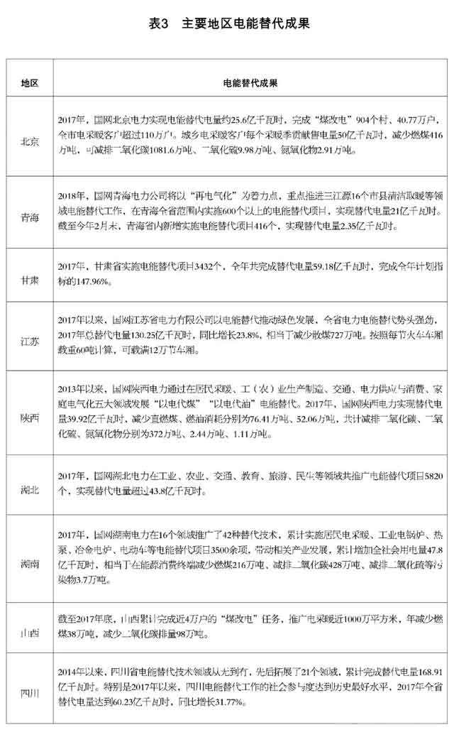 2017Ä꣬¹úÍø¹«Ë¾Ó¡·¢¡°Ê®ÈýÎ塱µçÄÜÌæ´ú¹æ»®£¬Ìá³öÁùÏîÖØµã´ëÊ©£¬ÔÚÇå½àȡů¡¢¹¤(Å©)ÒµÉú²úÖÆÔìµÈÎå¸öÁìÓòÈ«ÃæÍÆ½øµçÄÜÌæ´ú£¬Á¦Õùµ½2020ÄêÍê³ÉÌæ´úµçÁ¿5800ÒÚǧÍßʱ£¬ÆäÖÐÒÔµç´úúÍê³É4400ÒÚǧÍßʱ£¬ÍØÕ¹Çå½àÄÜÔ´ÏûÄɿռä230ÒÚǧÍßʱ¡£Í¬Ê±£¬´óÁ¦ÊµÊ©µçÄÜÌæ´úÊ®Ïîʾ·¶¹¤³Ì¡£ÖصãÅäºÏ¸÷¼¶Õþ¸®ÔÚ¾©½ò¼½¼°ÖܱߵØÇøµÄ¡°2+26¡±³ÇÊÐÍÆ¹ã¾ÓÃñ¡°Ãº¸Äµç¡±£¬ÔÚ¶«±±¡¢Î÷±±ÀûÓø»Óà·çµç¡¢¹â·ü·¢µçʵʩÇå½àȡů¡¢È¼Ãº×Ô±¸µç³§Çå½àÌæ´úµÈÏîÄ¿£¬ÔÚÑØº£¡¢¾©º¼´óÔ˺ӡ¢Ñس¤½Ö÷º½µÀʵʩ¡°Á½×ÝÒ»ºá¡±¸Û¿Ú°¶µç¹¤³Ì¡£´ËÍ⣬×éÖ¯µçÄÜÌæ´ú¿Í»§Óë·¢µçÆóÒµ¿ªÕ¹´òÀ¦½»Ò×£¬ÀûÓÃÊг¡»úÖÆ½µµÍµçÄÜÌæ´úÏîÄ¿ÓÃÄܳɱ¾¡£Í¨¹ý´´Ð¿ªÕ¹µçÄÜÌæ´ú¡°´ò°ü¡±½»Ò×£¬È«ÄêÍê³É½»Ò×µçÁ¿310ÒÚǧÍßʱ£¬ÆäÖÐÍê³Éȼú×Ô±¸µç³§Çå½àÌæ´ú124ÒÚǧÍßʱ¡£