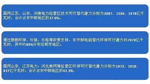 ¸ù¾Ý¶«Öв¿¹úÍø¸÷Ê¡¹«Ë¾¡°Ê®ÈýÎ塱µçÄÜÌæ´ú¹æ»®Ä¿±ê£¬½áºÏ¸÷Ê¡¹«Ë¾¾ÓªÇøÄÜÔ´Ïû·ÑÁ¿¡¢µçÄÜÌæ´ú»·±£¿ÉÐÐDZÁ¦£¬¿¼ÂÇÕþ¸®´óÁ¦ÍÆÐл·±£¡¢µç¼Û¡¢²¹ÌùµÈÕþ²ßµÄ·¢Õ¹Ô¤ÆÚ£¬Ô¤¼Æ¡°Ê®ÈýÎ塱¶«Öв¿µçÄÜÌæ´úµçÁ¿¹æ»®Ä¿±êΪ4260ÒÚǧÍßʱ£¬¿ÉÌá¸ßµçÄÜÕ¼ÖÕ¶ËÄÜÔ´Ïû·Ñ±ÈÖØÔ¼1.6¸ö°Ù·Öµã£¬ÆäÖÐÔ¼85%·Ö²¼ÔÚ³ÇÊеØÇø¡£