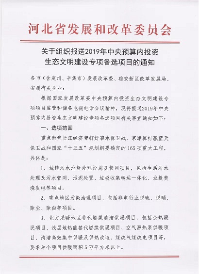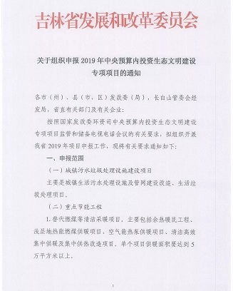 根据《中央预算内投资生态文明建设专项管理暂行办法》(发改环资规〔2017〕2135号)和7月27日国家发展改革委中央预算内投资项目申报及监管电视电话会议精神,近期山东、河北、河南、吉林等地陆续发布关于组织申报相关项目的通知。