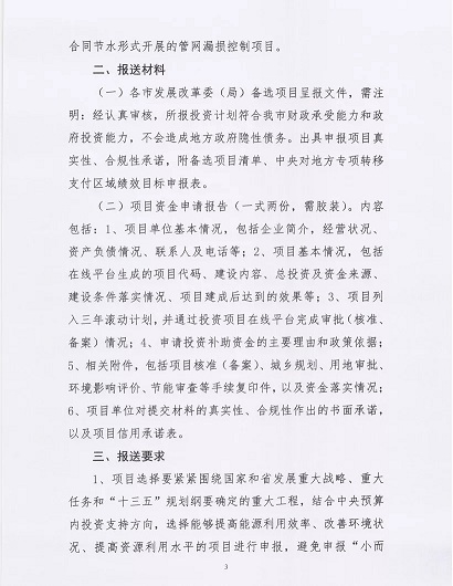 2018年9月10日前,各省辖市、省直管县(市)发展改革委将申报文件及有关材料报送省发展改革委(环资处)。