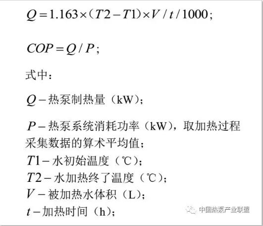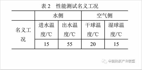 热泵系统制热量(不含辅助电加热)计算按GB23137-2008中6.3.2.3方法,功率按6.4计算方法[3],最终能效比按如下公式计算: