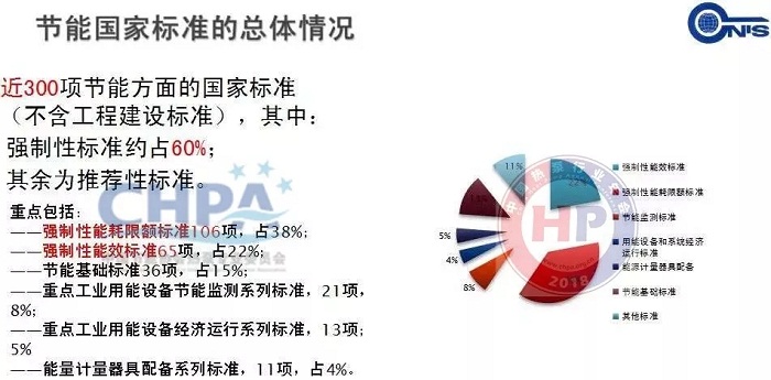目前国家的节能标准有300余项(不含工程建设标准),其中强制性标准约占60%,其余为推荐性标准。重点包括:强制性能耗限额标准106项强制性能效标准65项。依据能效标准,我国于2004年正式实施了强制性能效标识管理制度,到目前为止已经发布14批目录,有37类产品纳入到了能效标识的目录范围。
