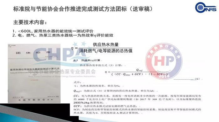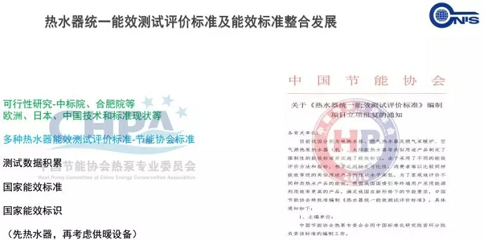 最后,为大家介绍一下统一热水器测试方法的研究进展。为了落实国务院有关强制性标准整合的有关精神,2016年4月,由中国节能协会与中国标准化研究院联合启动热水设备能效检测方法与能效标准整合可行性研究第一次研讨会,会议一致认为多种热水器能效标识统一评价具有重要意义。由于统一评价的难度,由节能协会立项制定热水器统一测试方法团体标准。