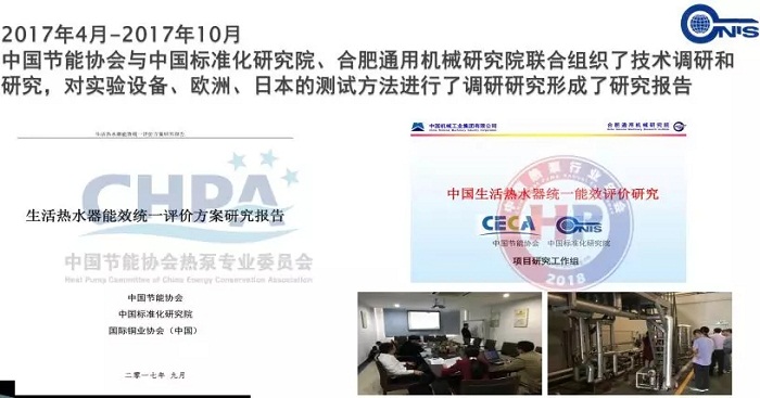 2017年4月到2017年10月,由中国节能协会与中国标准化研究院、合肥通用机械研究院联合组织了技术调研和研究,对实验设备和欧洲、日本的测试方法进行了调研研究,并形成了研究报告。2017年4月到2018年7月,共组织召开了4次工作会议,对标准的相关内容进行研讨。