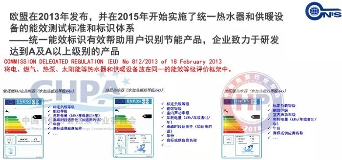 欧盟在2013年发布,2015年开始实施了统一热水器和供暖设备的能效标准和标识体系,将电、燃气、热泵、太阳能等热水器和供暖设备放在了同一能效等级评价框架中,能够有效帮助用户识别节能产品,促进企业致力于研发达到A级和A以上级别产品。