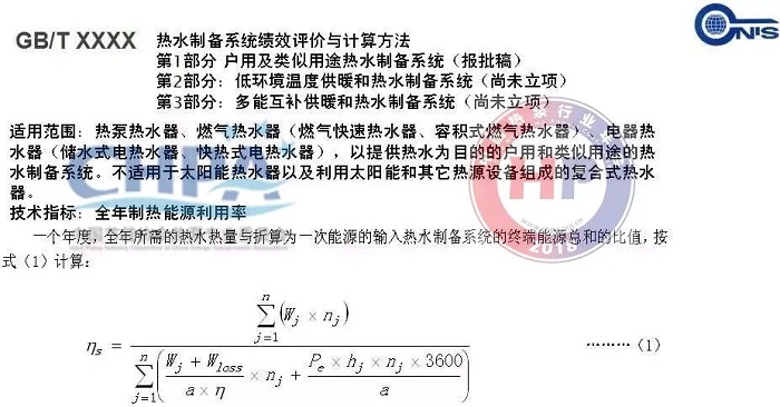 经过了多次征求意见,目前团体标准已经形成了送审稿,标准的名称是T/CECA XXXX-XXXX《家用和类似用途热水器能效测试计算方法》,适用范围包括热泵热水器、燃气热水器(燃气快速热水器、容积式燃气热水器)、电器热水器(储水式电热水器、快热式电热水器),以提供热水为目的的户用和类似用途的热水制备系统。由于太阳能热水器测试方法的复杂性,暂时不适用于太阳能热水器以及利用太阳能和其它热源设备组成的复合式热水器。