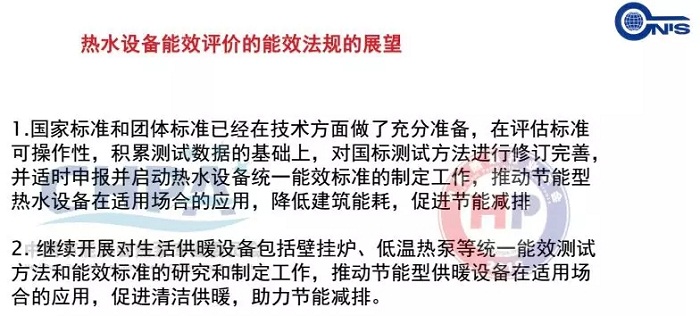 当前,国家标准和团体标准已经在技术方面做了充分准备,希望审定发布以后,相关的企业和检测机构可以依据标准进行测试,在评估标准可操作性和积累测试数据的基础上,对国标的测试方法进行修订完善,并适时申报并启动热水设备统一能效标准的制定工作;同时,基于热水设备的能效标准测试方法的制定经验,我们将继续开展对生活供暖设备包括壁挂炉、低温热泵等统一能效测试方法和能效标准的研究和制定工作,推动节能型热水和供暖设备在适用场合的应用,促进清洁供暖,助力节能减排。