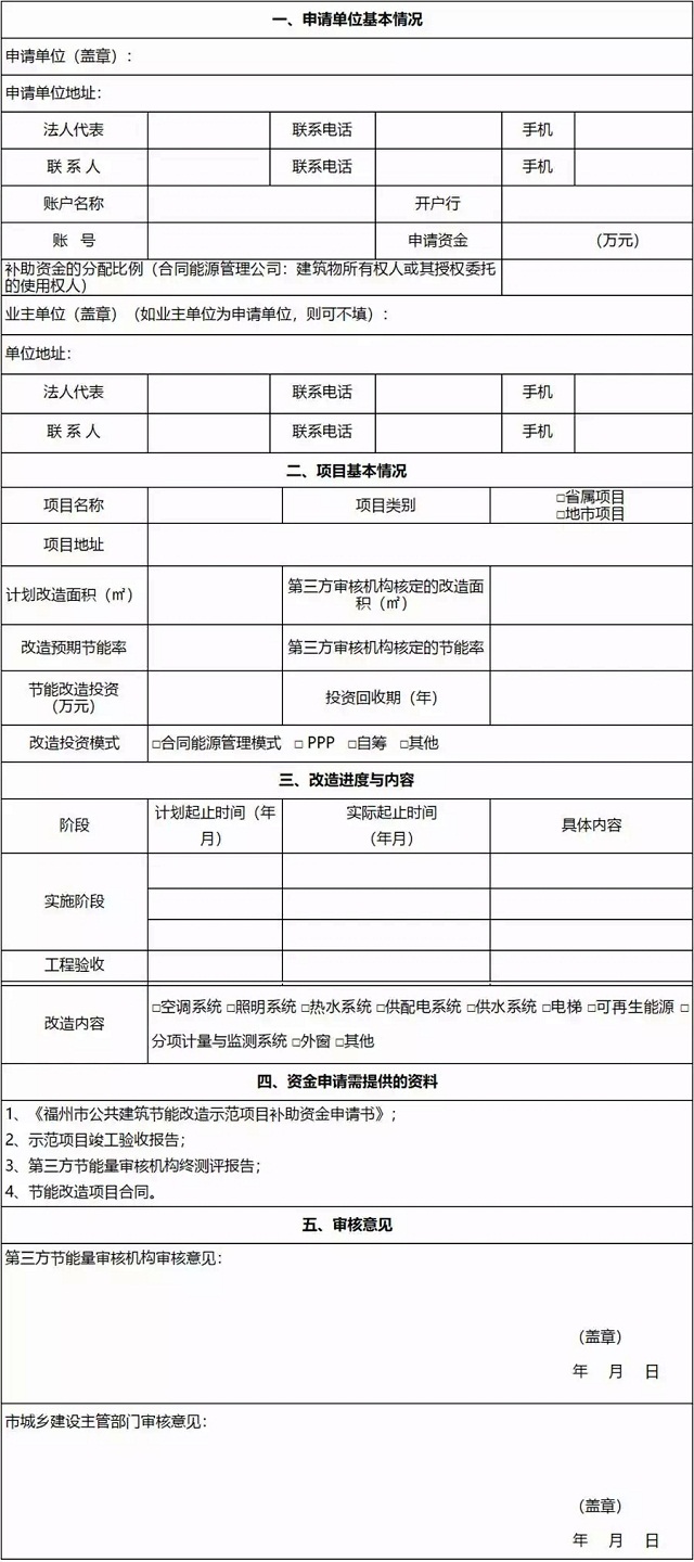 第五条 示范项目通过验收和节能量终测评后,申报单位应持《福州市公共建筑节能改造示范项目补助资金申请书》(附件)、项目竣工验收报告、节能量核定报告和相关工程合同等资料向市建委申请补助资金。