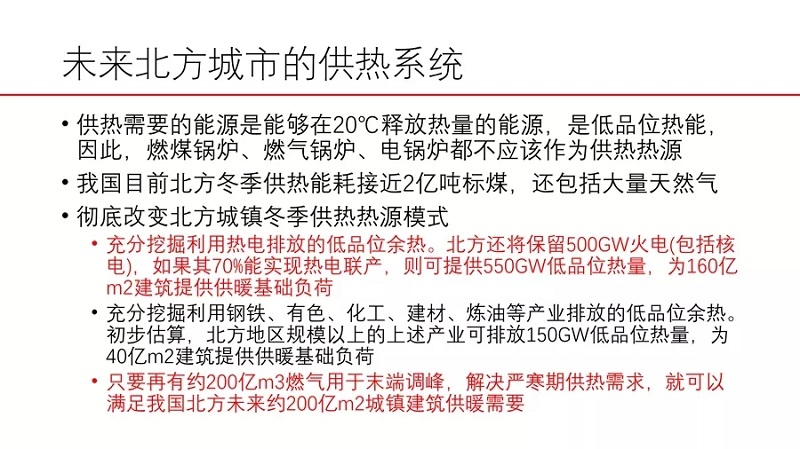Öйú½ÚÄÜлáÀíʳ¤¡¢Öйú¹¤³ÌԺԺʿ½ÒÚÔÚÖйú½ÚÄÜлá¾Ù°ìµÄ¡°2018Öйú½ÚÄÜÓëµÍ̼·¢Õ¹ÂÛ̳¡±ÉÏÇ¿µ÷£¬Öйú¡°È±ÓÍÉÙÆø¡±µÄ×ÊÔ´×´¿öʹÎÒÃǺÜÄѰ´ÕÕÎ÷·½µÄ·¾¶Ãº¸ÄÓÍÆø£¬ÎÒ¹ú±ØÐë·¢Õ¹¿ÉÔÙÉúÄÜÔ´ÓëºËÄÜΪÖ÷µÄÄÜÔ´¹©¸øÏµÍ³£¬Óë·¢´ï¹ú¼Òͬ²½¡£ÔÚδÀ´±±·½³ÇÊеĹ©ÈÈϵͳÖУ¬¹©ÈÈÐèÒªµÄÄÜÔ´ÊÇÄܹ»ÔÚ20¡æÊÍ·ÅÈÈÁ¿µÄÄÜÔ´£¬ÊÇµÍÆ·Î»ÈÈÄÜ£¬Òò´Ë£¬È¼Ãº¹øÂ¯¡¢È¼Æø¹øÂ¯¡¢µç¹øÂ¯¶¼²»Ó¦¸Ã×÷Ϊ¹©ÈÈÈÈÔ´¡£