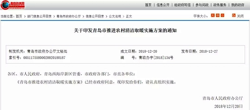 关于印发青岛市推进农村清洁取暖实施方案的通知